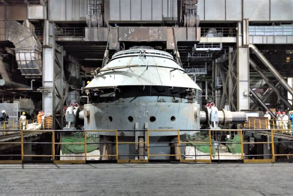 中國二十二冶承建德信一期擴建項目煉鋼轉爐安裝工程3號轉爐推爐成功